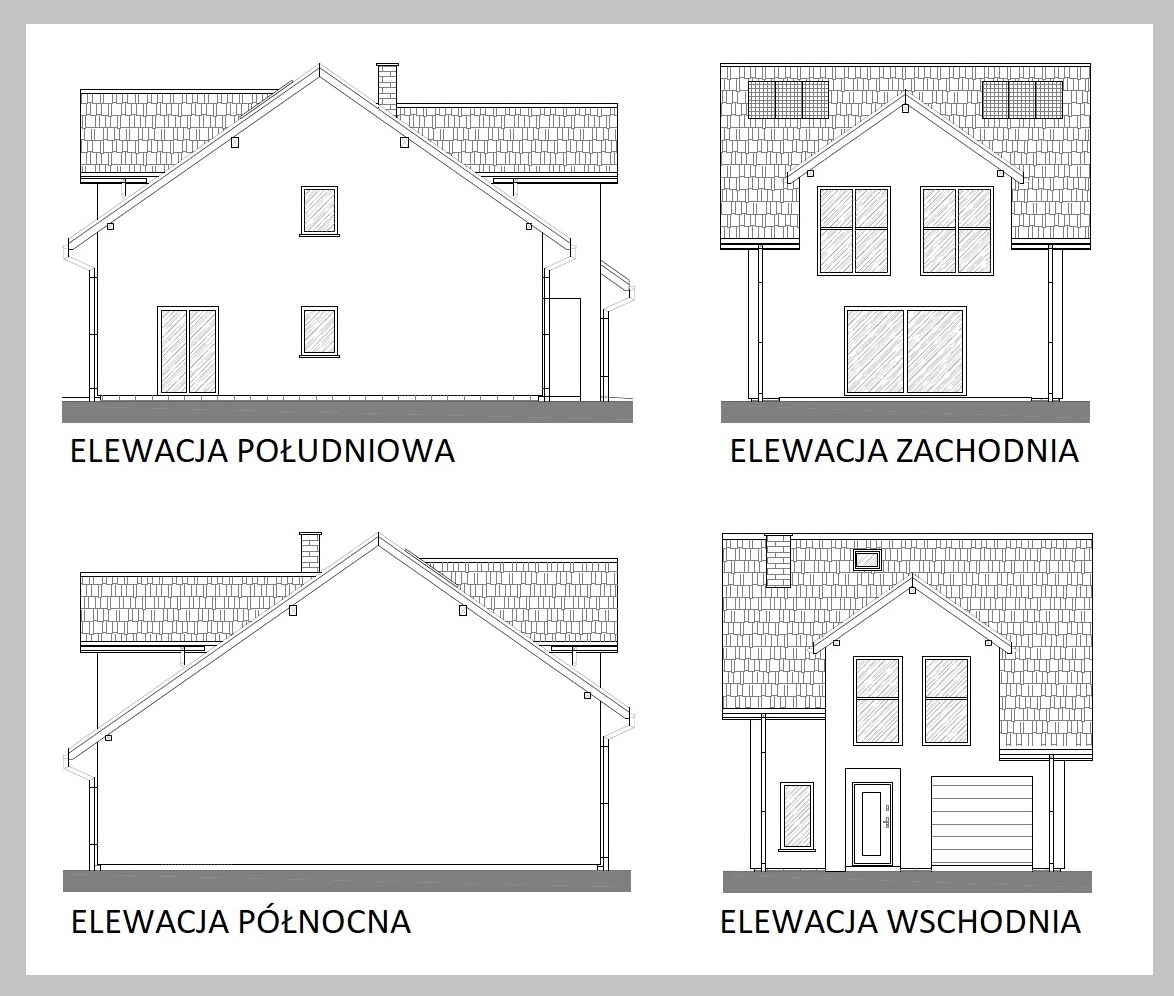 Każdy z budynków zaprojektowany został jako niepodpiwniczony, parterowy z użytkowym poddaszem z dachem dwuspadowym.