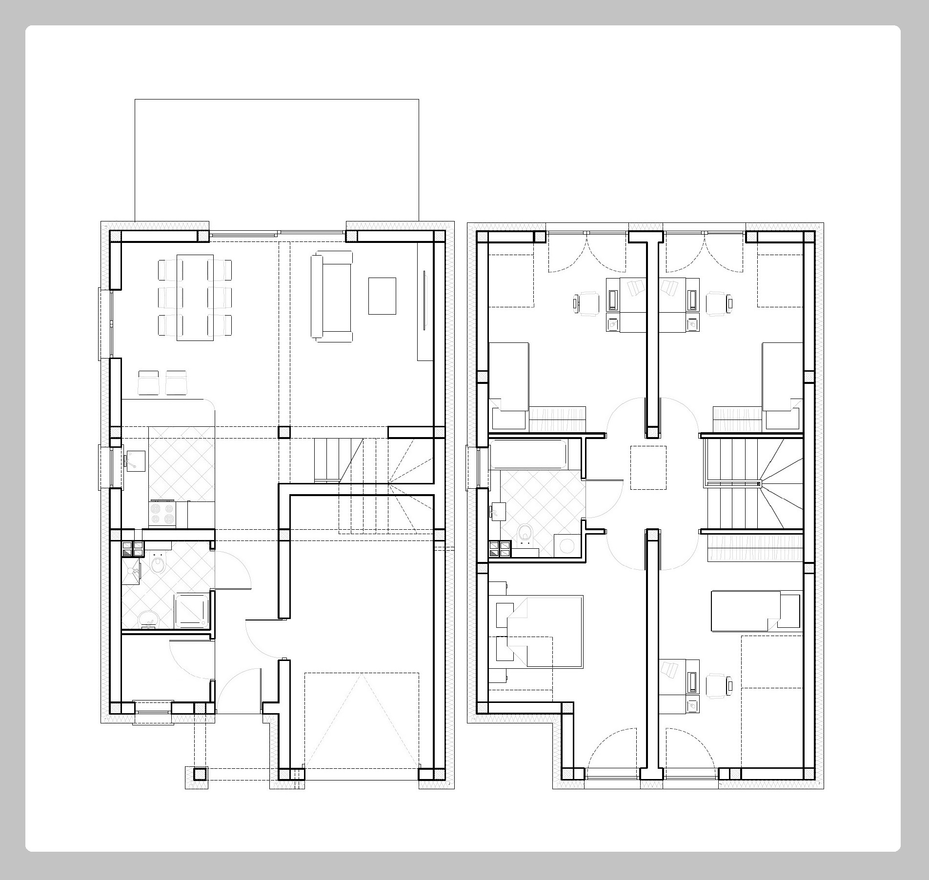 Obiekty podzielone zostaną funkcjonalnie na dwie strefy –„ogólnodostępną” na parterze i bardziej prywatną na pierwszej kondygnacji.